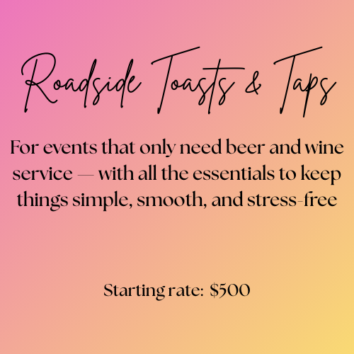 With Roadside Spirits, we bring the bar to you—serving up custom cocktails, laid-back vibes, and southern charm wherever the party’s at. Whether you're saying "I do" or just love a good time, we’re here to make every pour personal and every moment memorable.